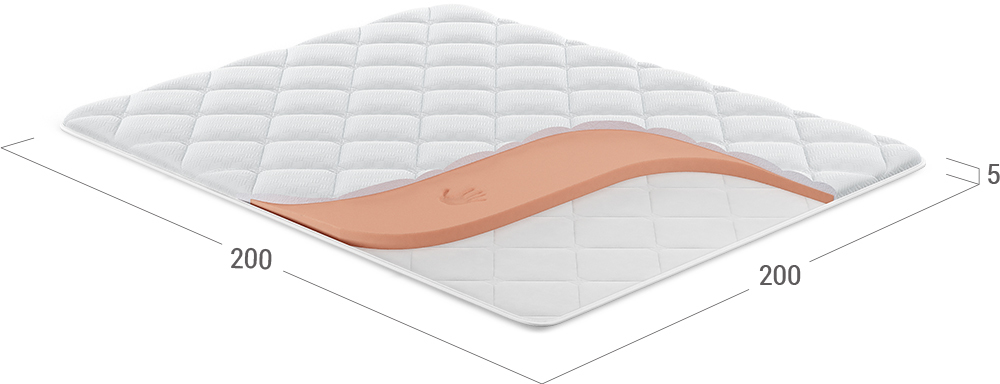 Этот тонкий беспружинный матрас высотой 5 см не только скорректирует несовершенства спального места, но и защитит его поверхность от загрязнений.