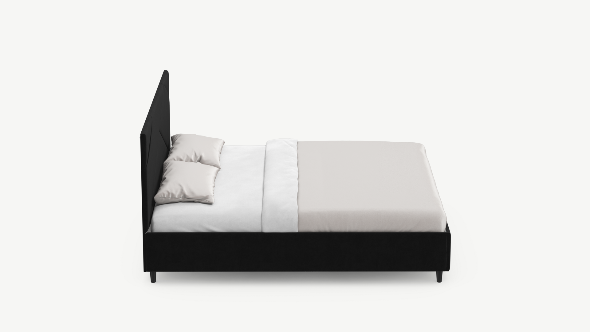 Элегантным и практичным акцентом служат скрытые карманы, расположенные по его углам. Лаконичные формы объемных царг создают единый гармоничный образ и фокусируют внимание на центральном текстурном элементе кровати.