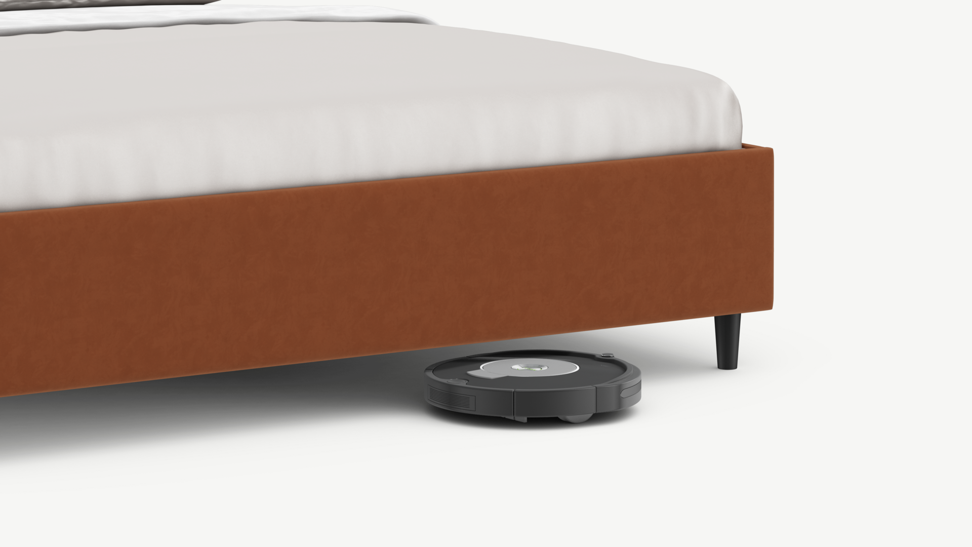 Благодаря высоким опорам под кроватью проходит робот-пылесос и легко проводится влажная уборка, что обеспечивает чистоту и порядок в доме.