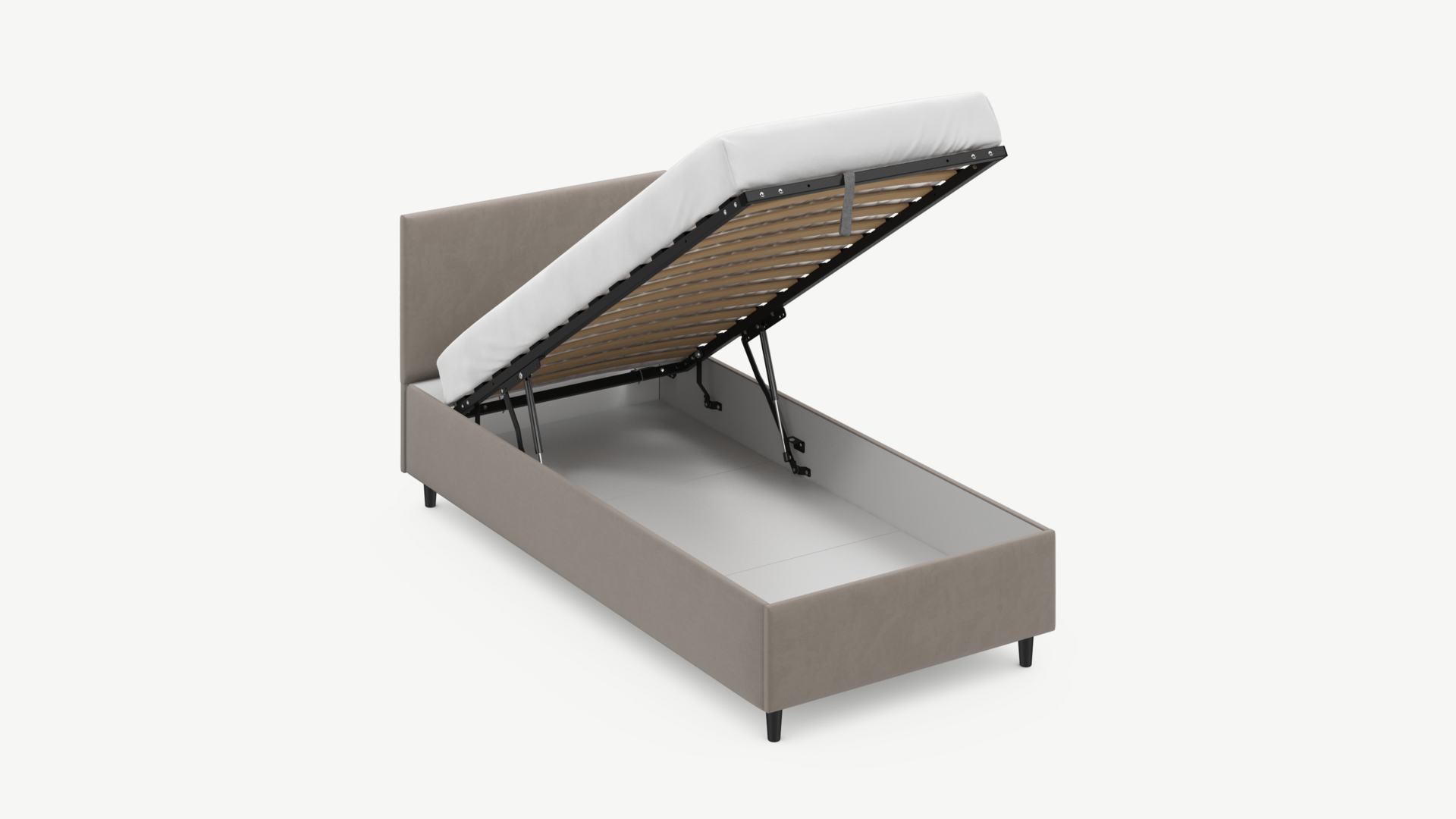 Регулируемый подъемный механизм с газовыми амортизаторами позволяет плавно и бесшумно поднимать и опускать спальное место.