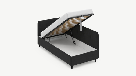 - Скрытая под основанием вместительная емкость без внутренних перегородок позволяет использовать всю площадь подкроватного пространства для хранения вещей.