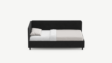 Кровать угловая с подъемным механизмомУгловая односпальная кровать MOON FAMILY 1253 с мягкой спинкой и изголовьем обладает округлыми формами, привносящими в интерьер нотки нежности. Изголовье, украшенное пуговицами, добавляет окружающему пространству шарм и уют. Высокие опоры придают кровати визуальной легкости, а также обеспечивают удобство во время уборки.
